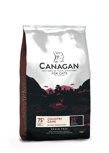 Canagan country Game ist ein getreidefreies Katzenfutter mit über 65% Fleisch.