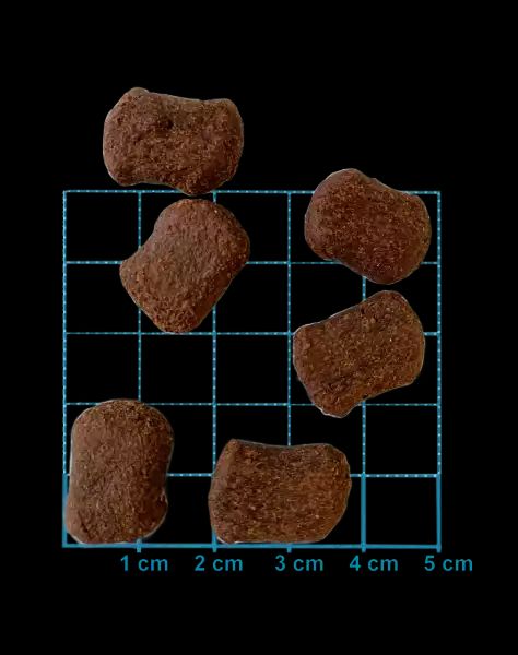 Analytische Bestandteile: Rohprotein 26%, Rohfett 15%, Rohfaser 4%, Rohasche 5%, Feuchtigkeit bis 30%, Kalzium 1,5%, Phosphor 1,0%, Natrium 0,3%, Metabolische Energie 3059 kcal/kg, 12,8 MJ/kg