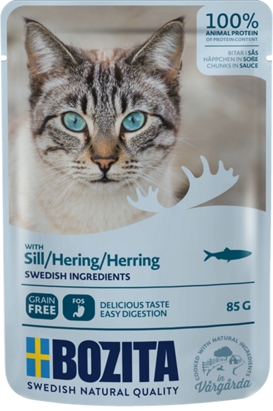 Fleisch und tierische Nebenerzeugnisse (Hering 8%) 50,0 %, Mineralstoffe, Zichorie Inulin (FOS