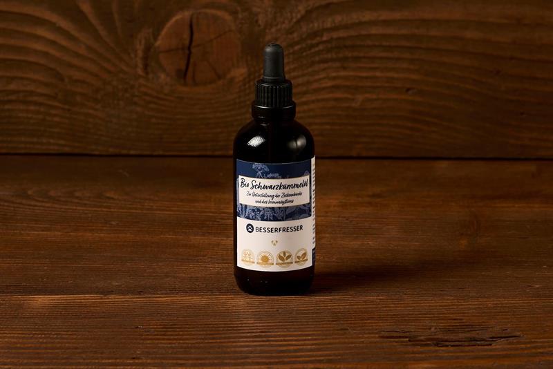 Reines kaltgepresstes Schwarzkümmelöl aus kontrolliert biologischem Anbau, gewonnen aus ägyptischen